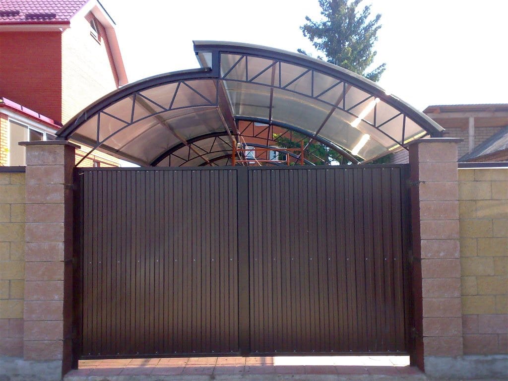 Ворота распашные с дистанционным управлением из профнастила с калиткой